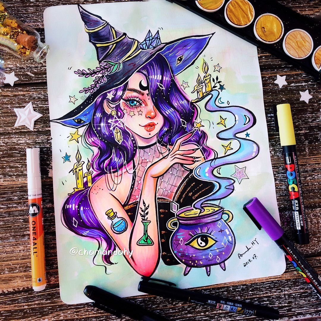 Иллюстрации в скетчбуке ведьмы