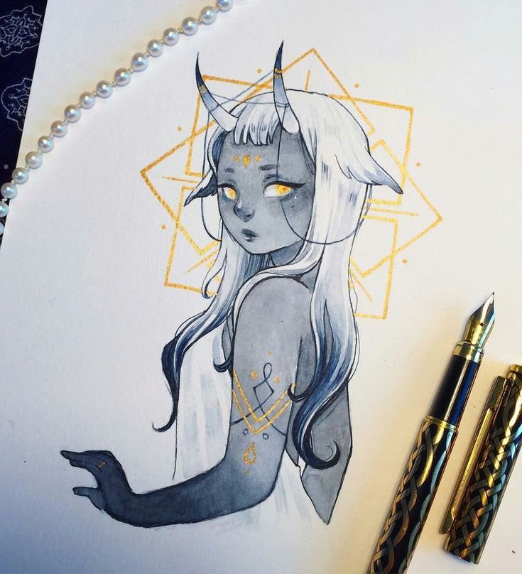![Арты акварелью и черной ручкой]()