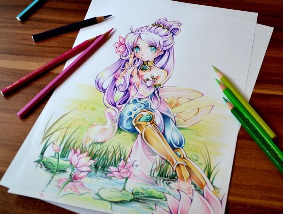 ![Аниме акварельными карандашами]()