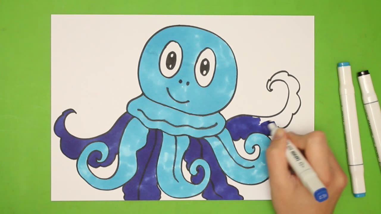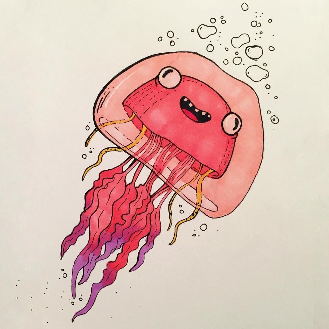![Идеи медузы для рисования маркерами]()
