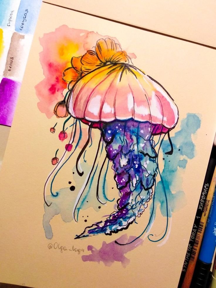 Рисование акварелью медуза