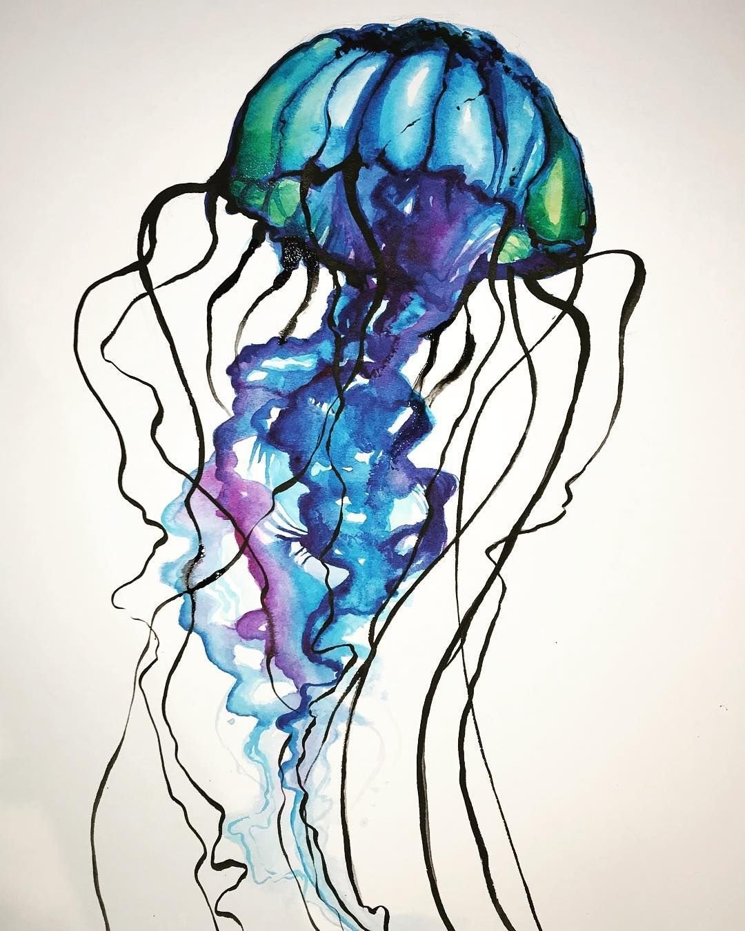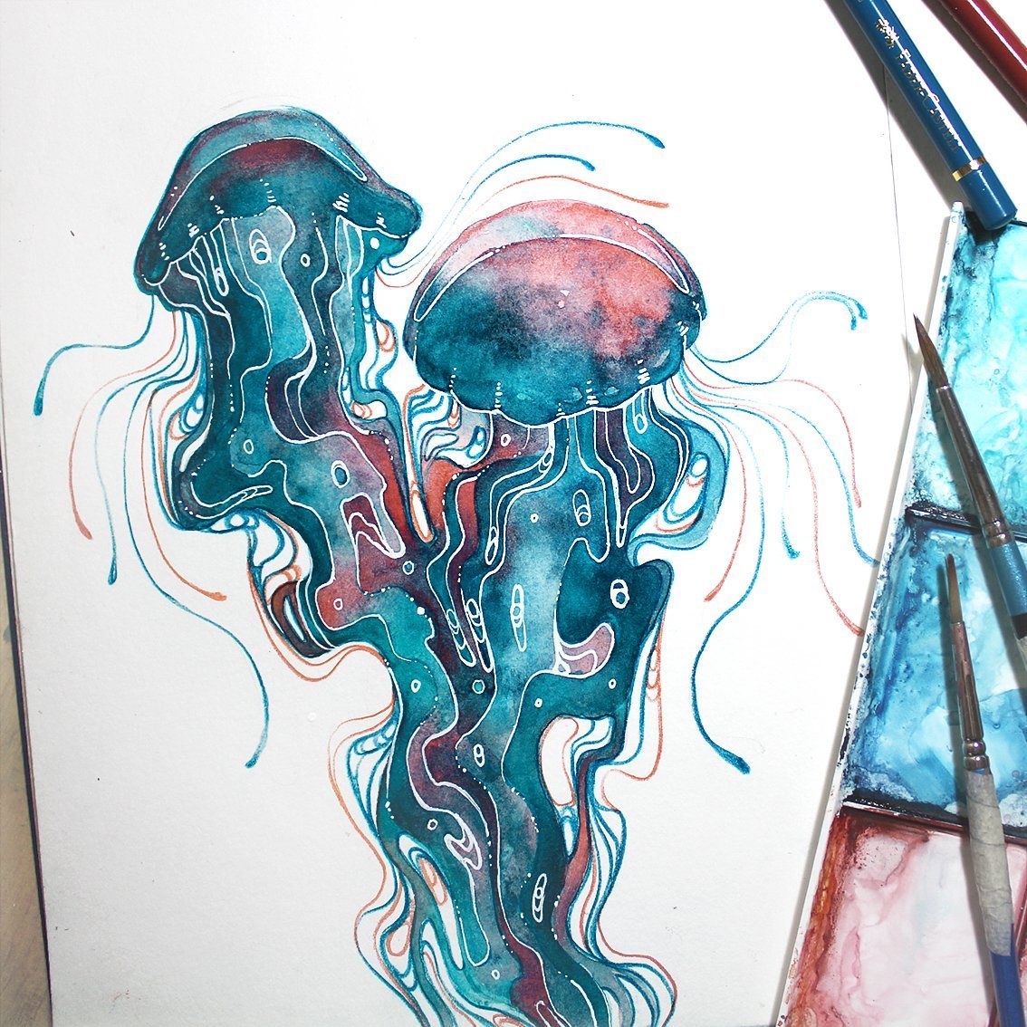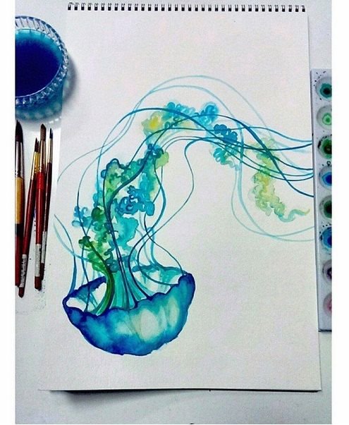 ![Скетч медузы акварелью]()