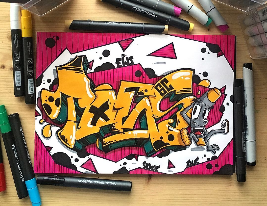 ![Граффити на бумаге маркером]()