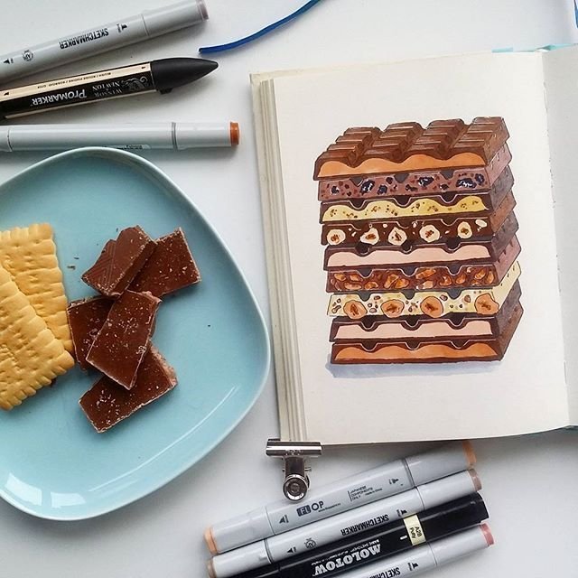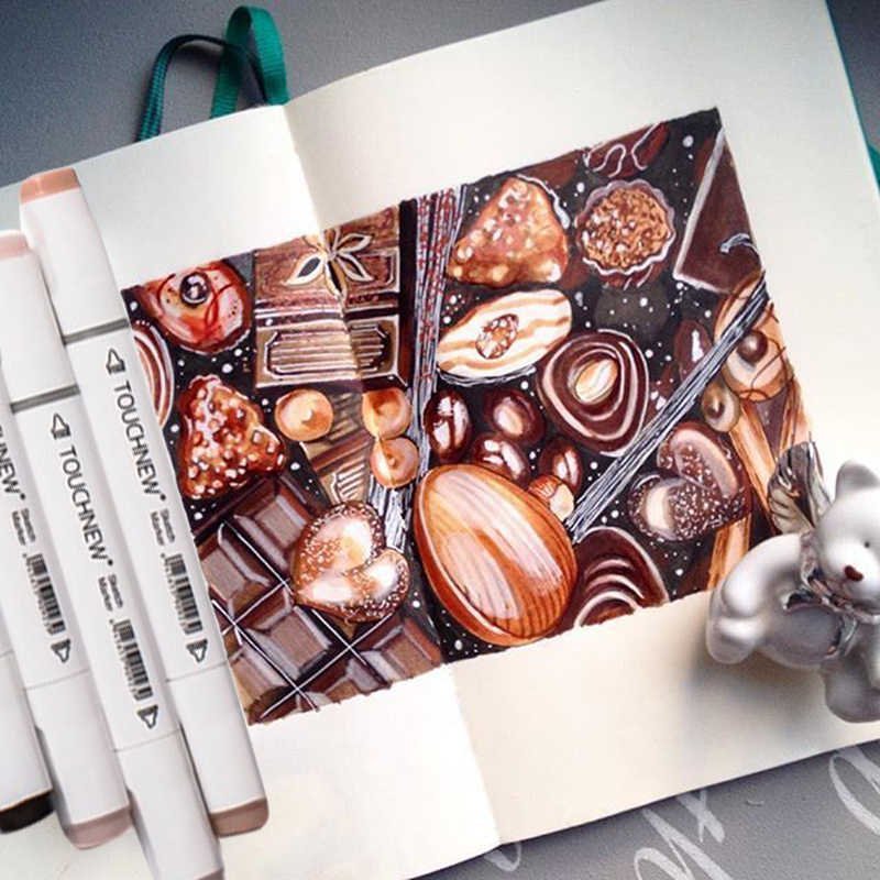 Скетчинг маркерами шоколад