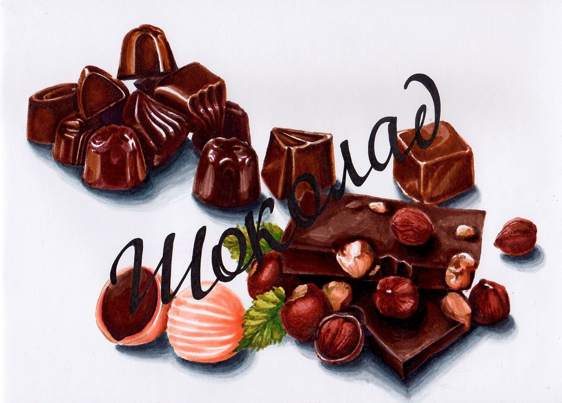 ![Шоколад рисунок акварелью]()