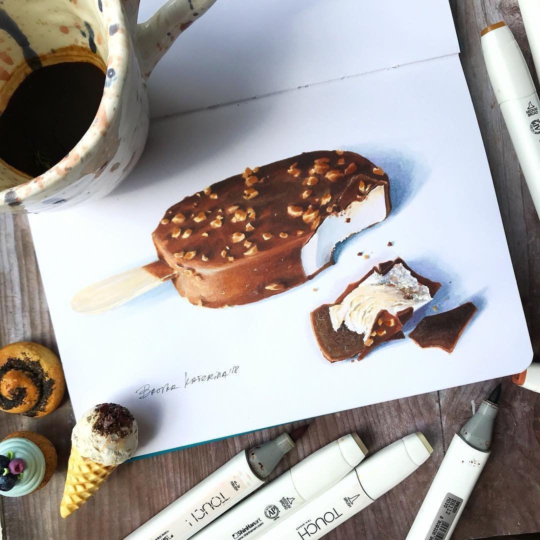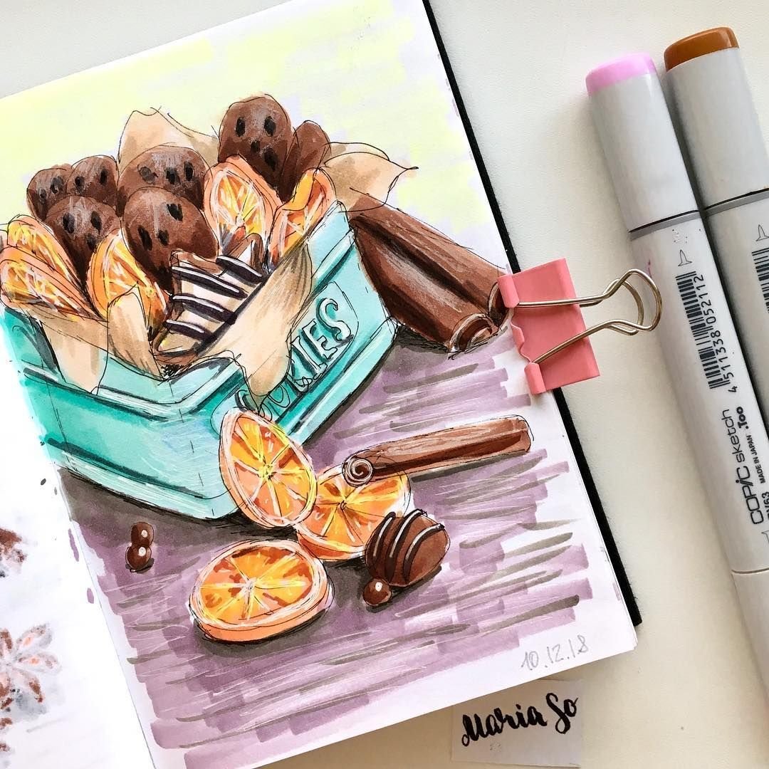 ![Скетчи маркерами сладости]()