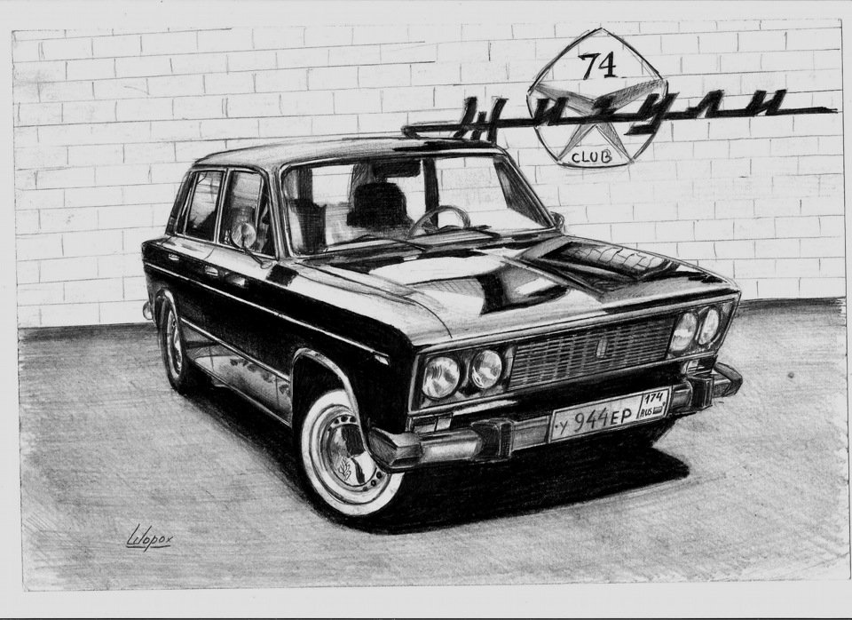 ![Рисунки карандашом машины ВАЗ]()