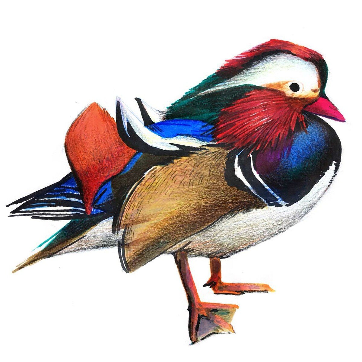 Утка Мандаринка рисунок