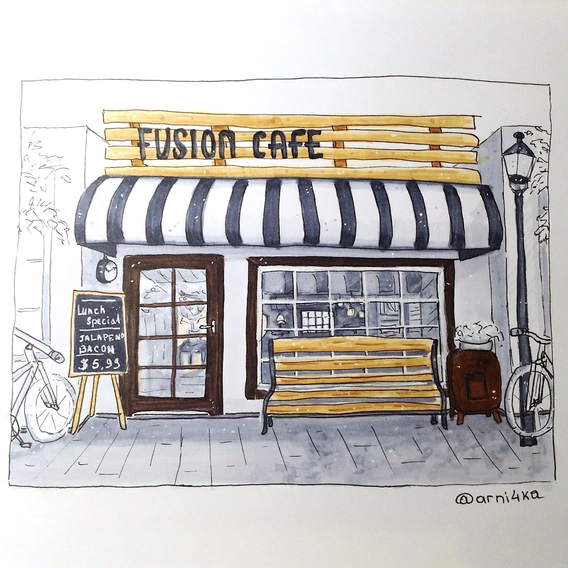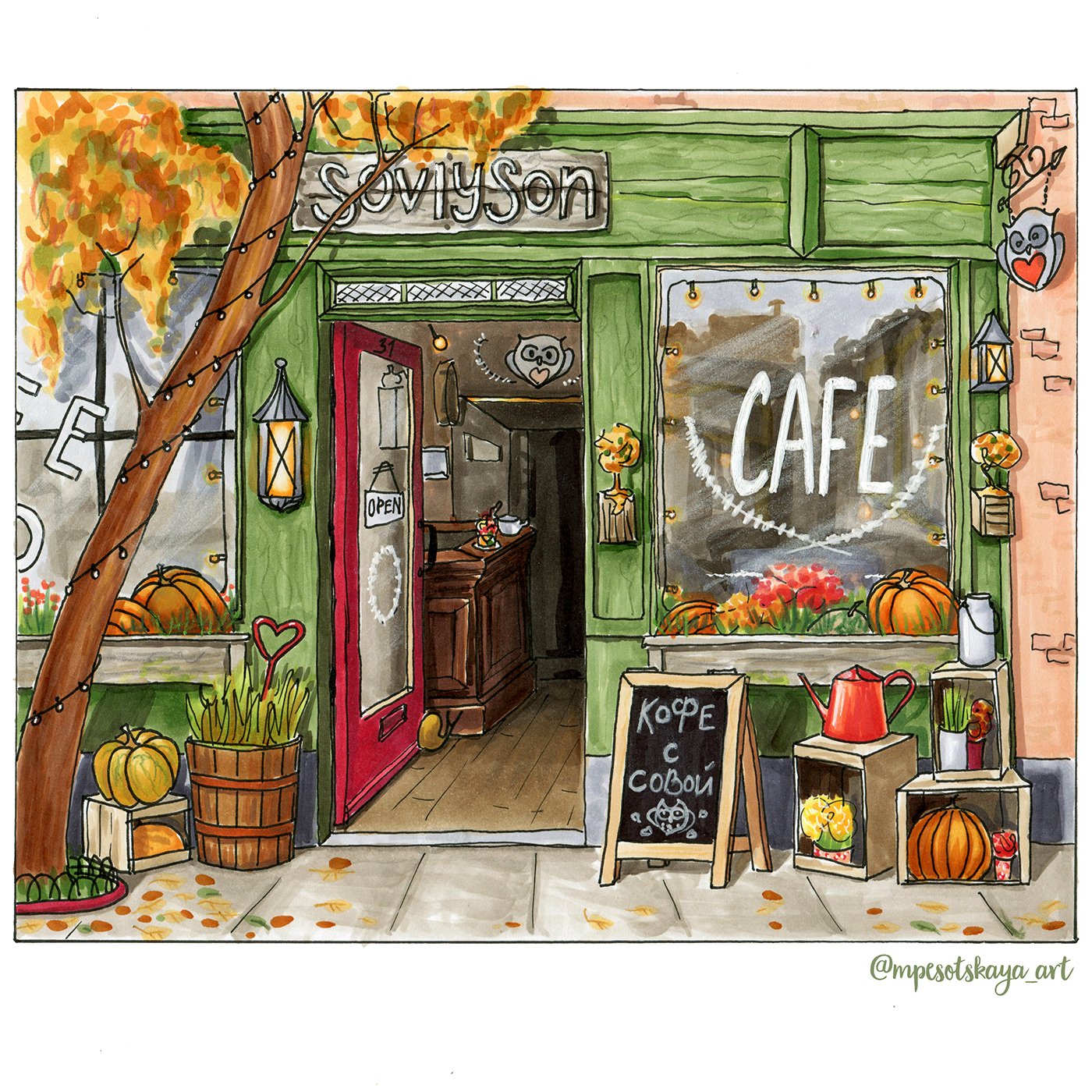 ![Кафе иллюстрация маркерами]()