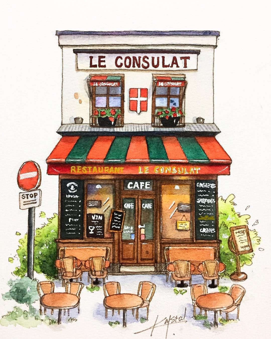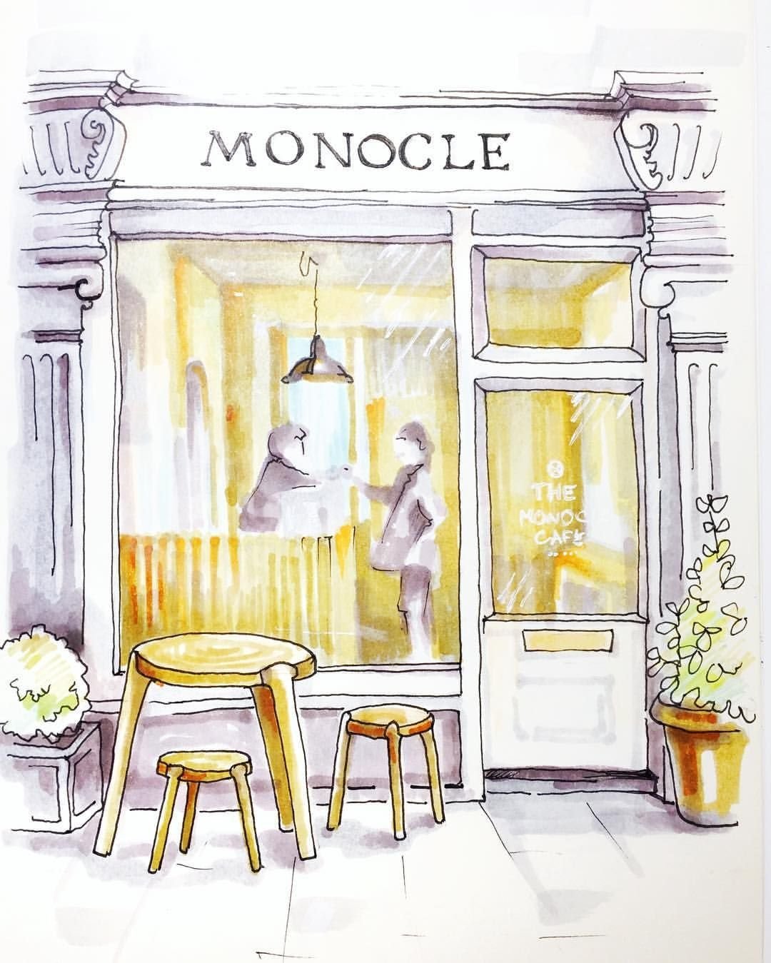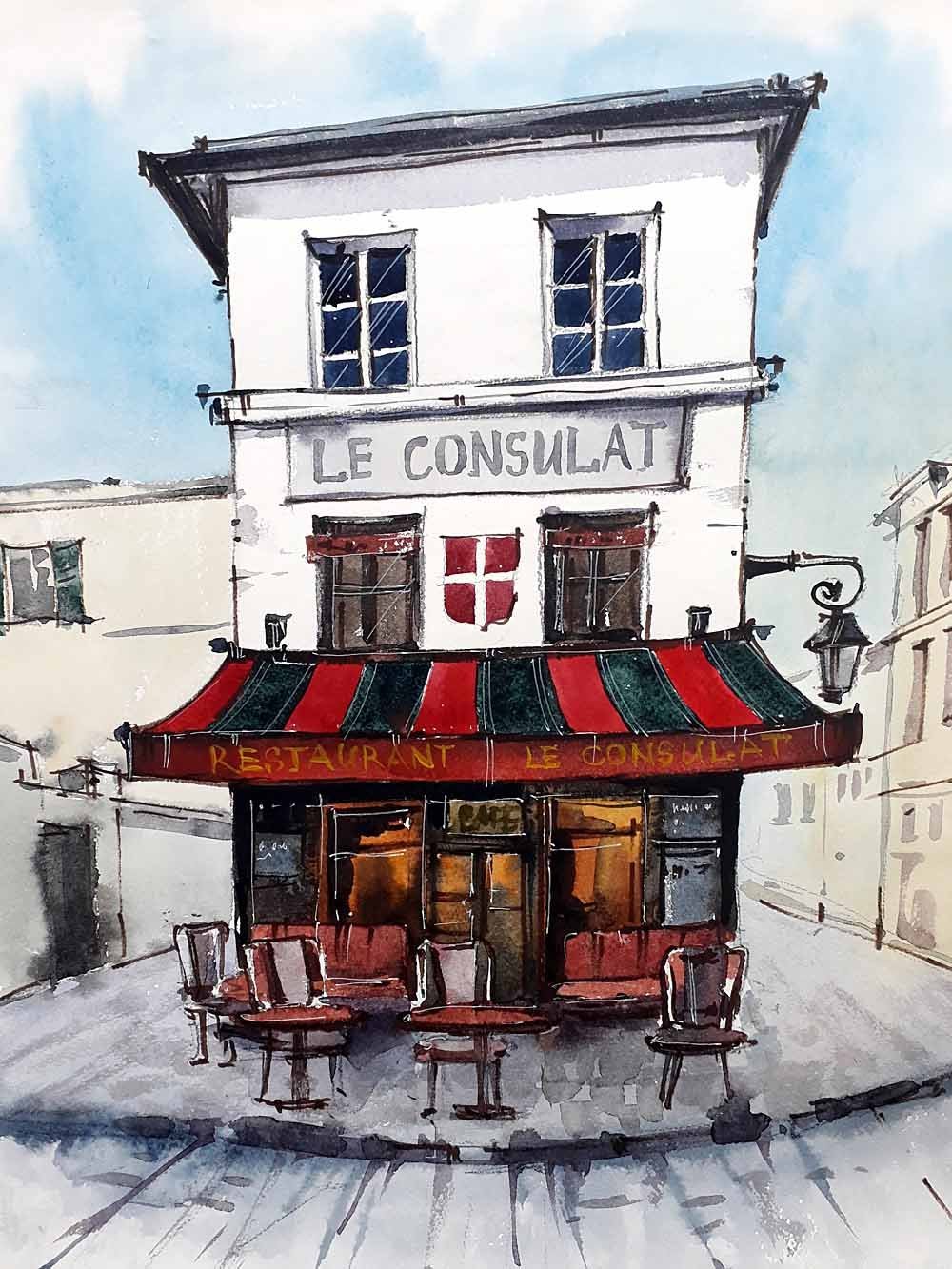 ![Франция кафе скетчи акварелью]()