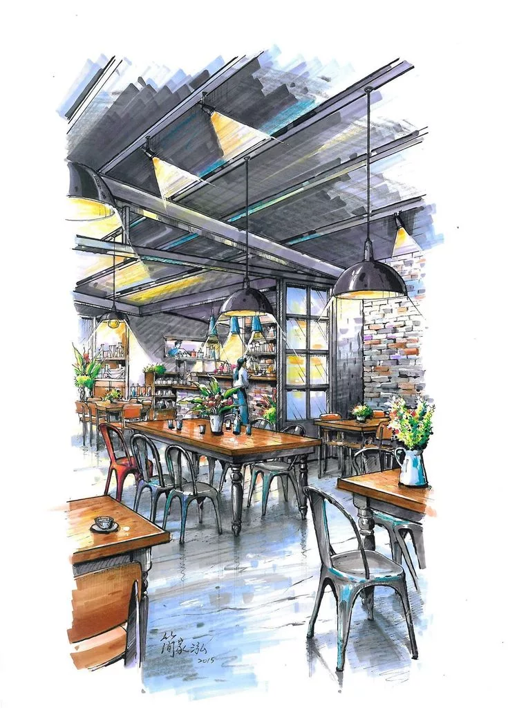 Скетч интерьера кафе