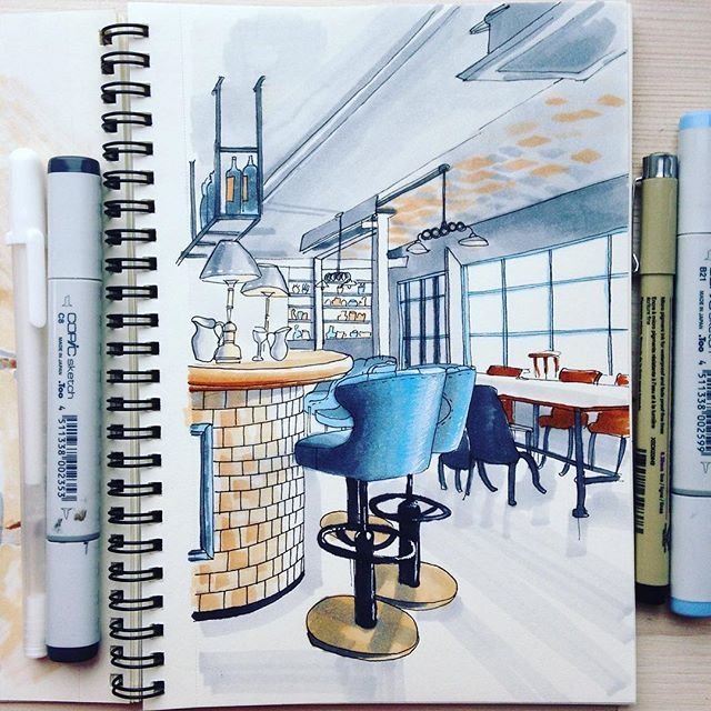 Интерьерные скетчи маркерами
