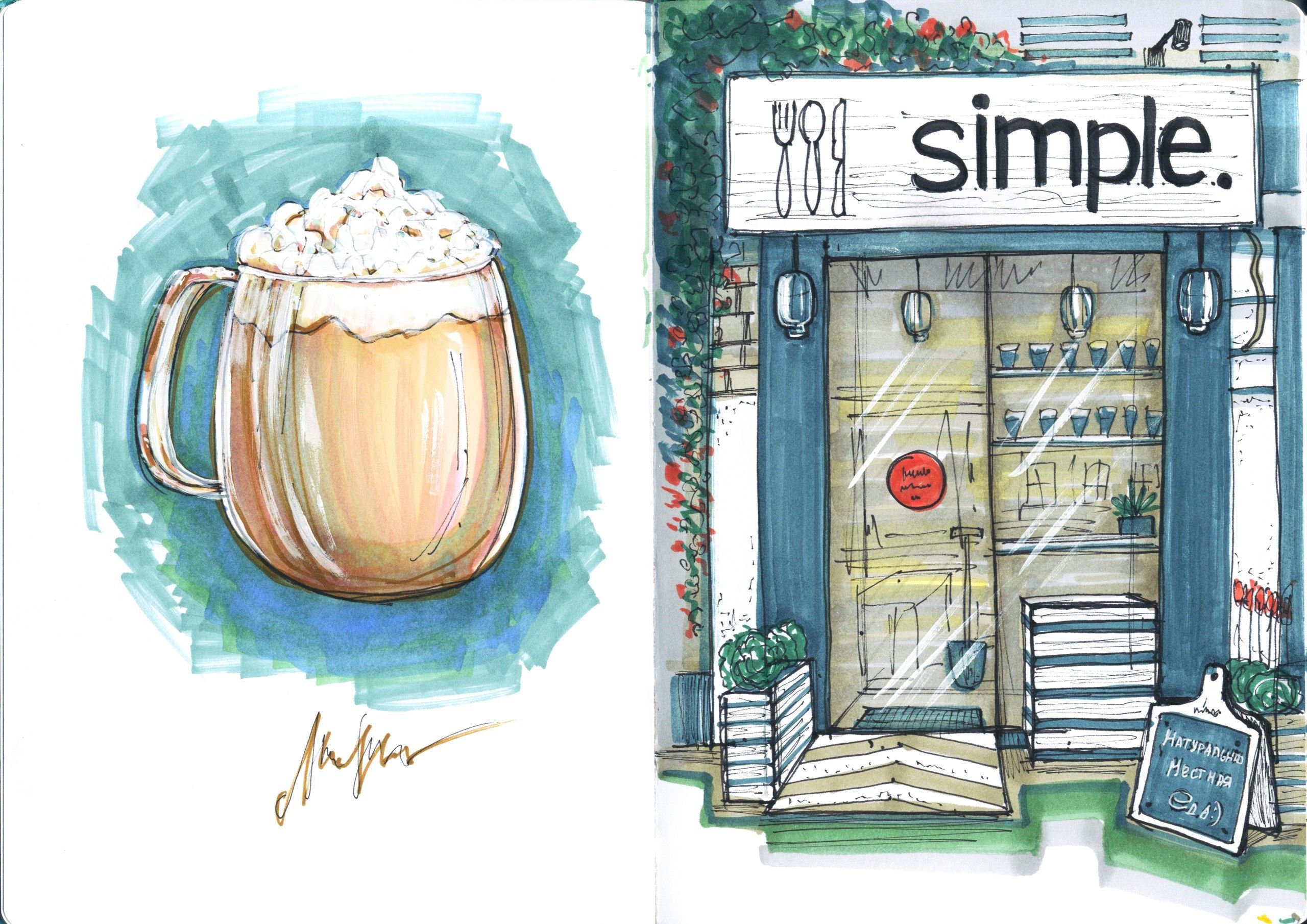 Рисунки в скетчбуке кафе