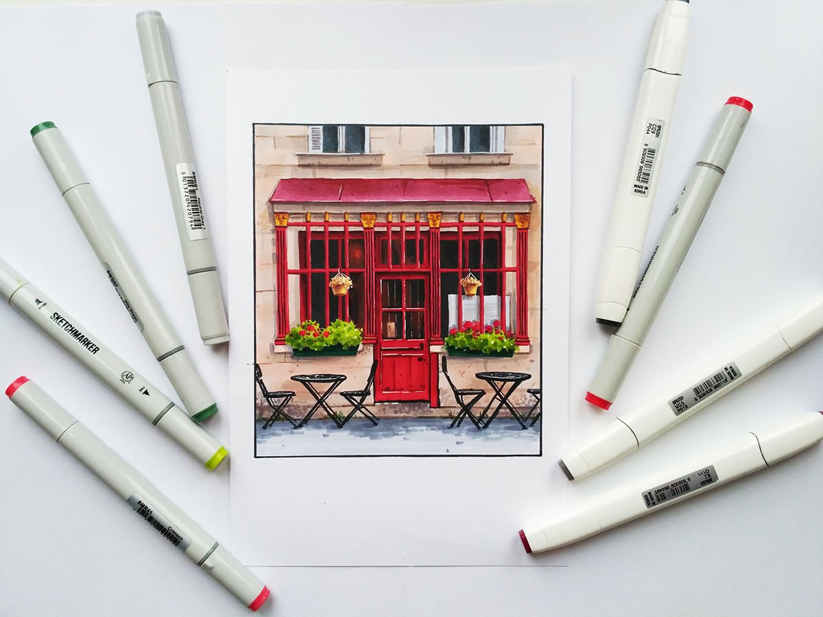 Кафе скетч маркерами