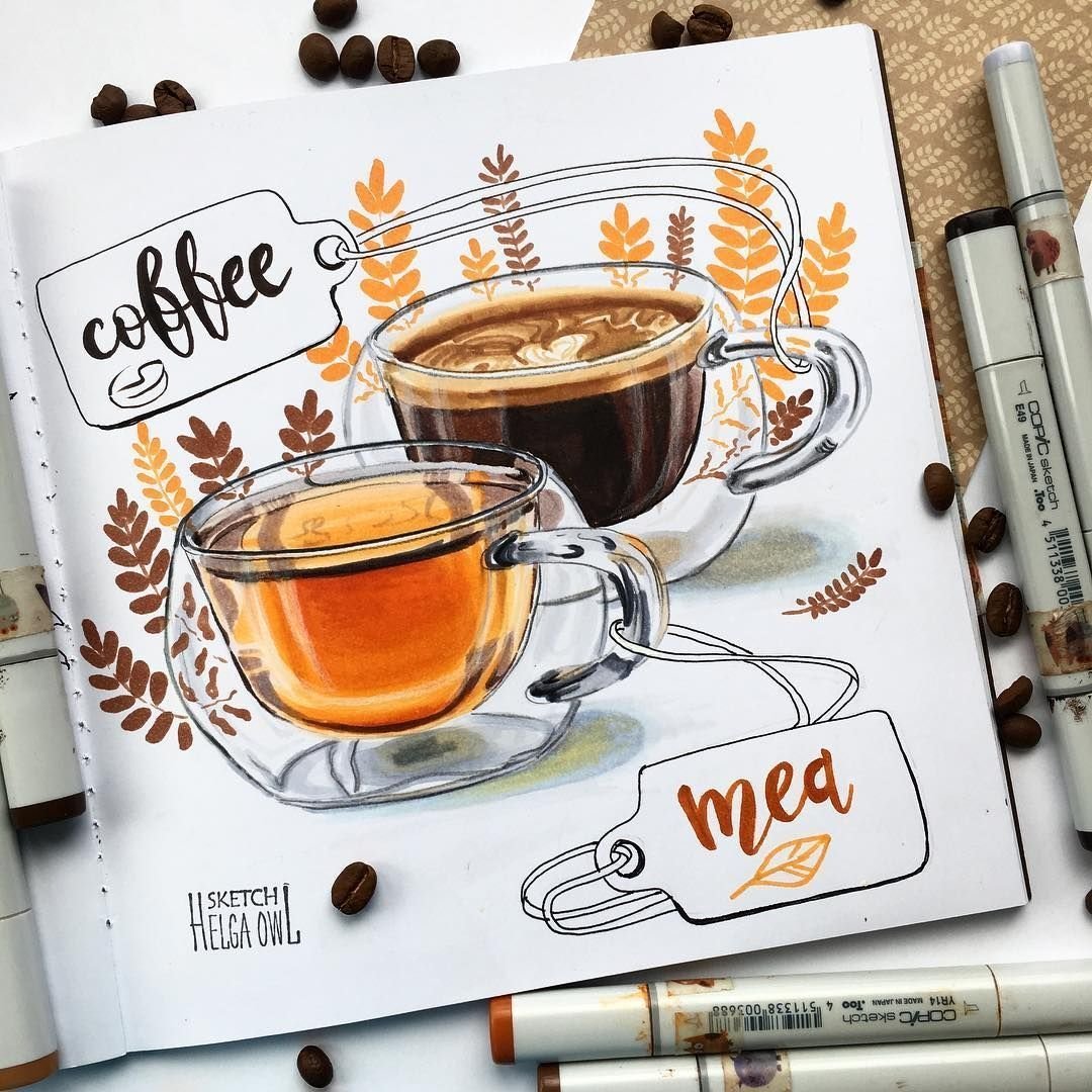 ![Кофе скетч маркерами]()