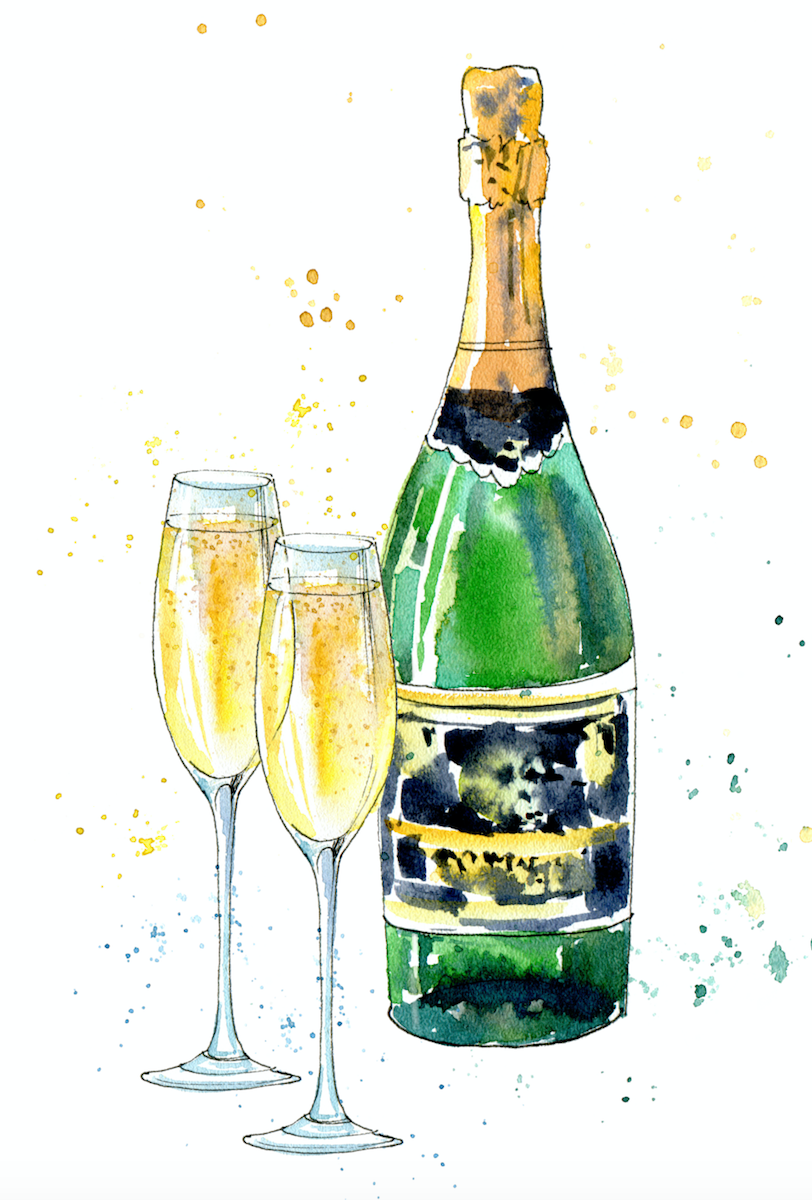 Шампанское рисунок акварель