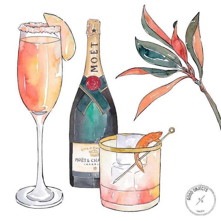 ![Шампанское рисунок акварель]()