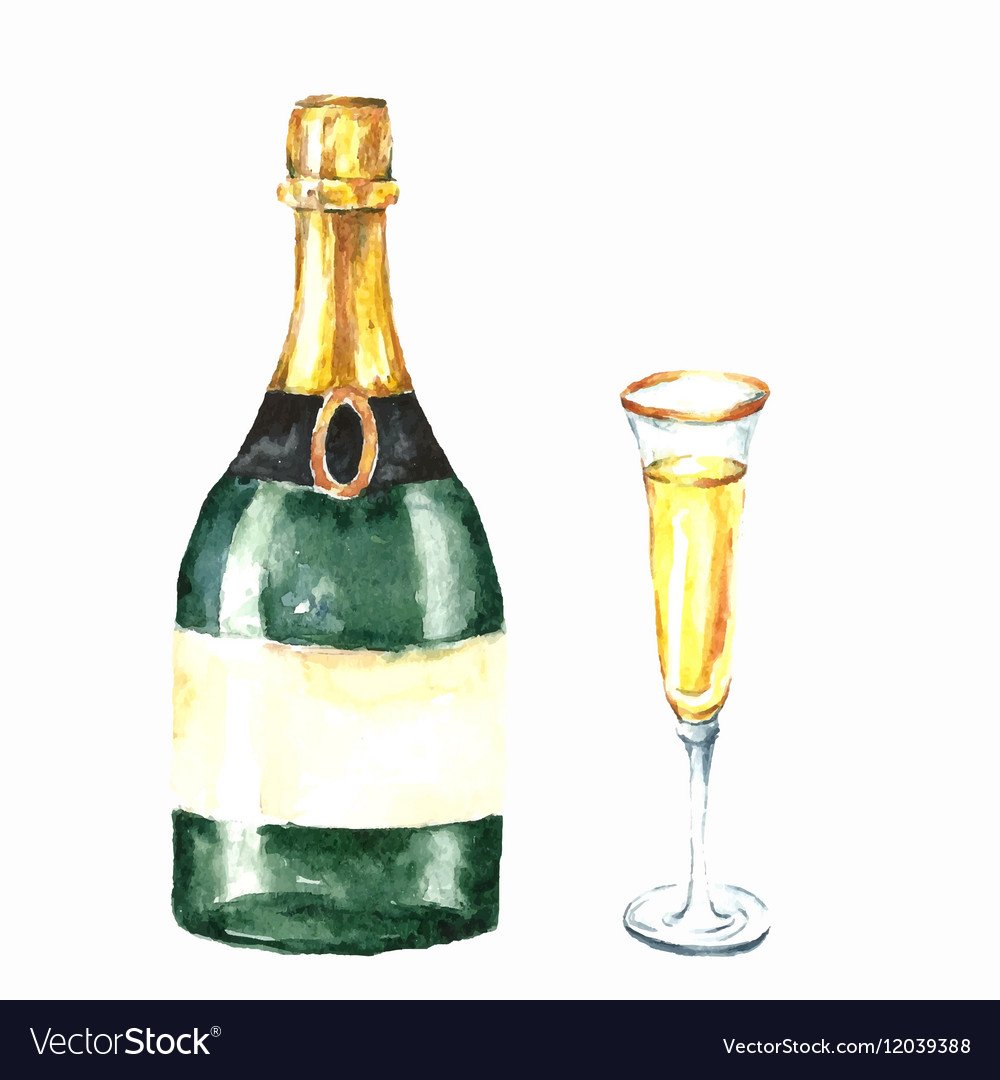 ![Бутылка шампанского акварелью]()