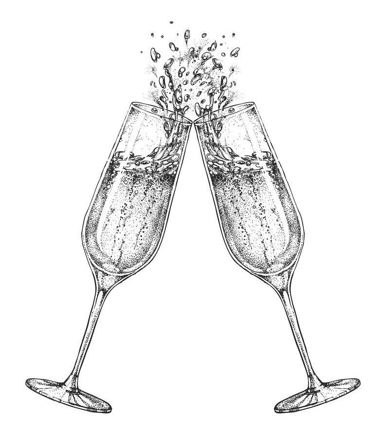![Нарисованный бокал шампанского]()