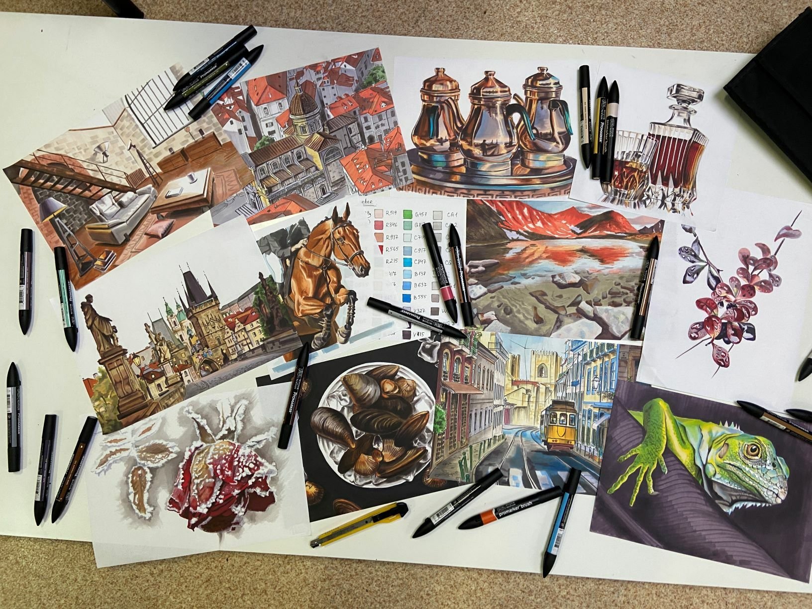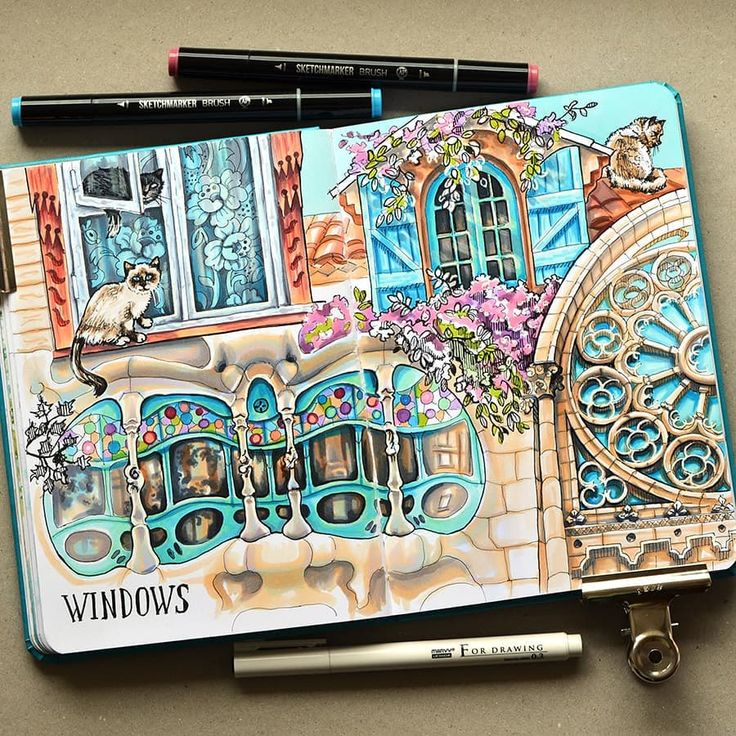 ![Пейзажи маркерами для скетчинга лёгкие]()