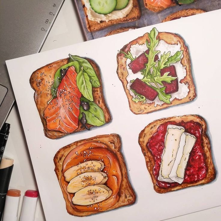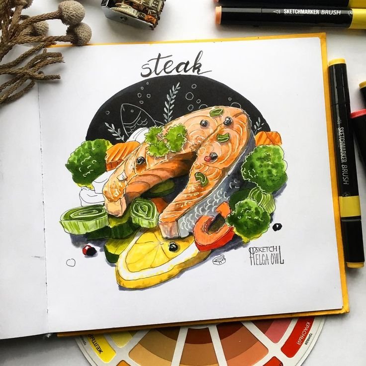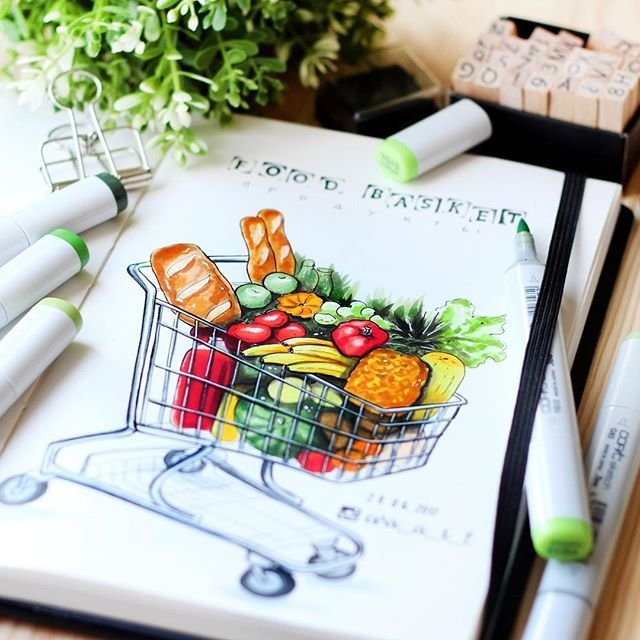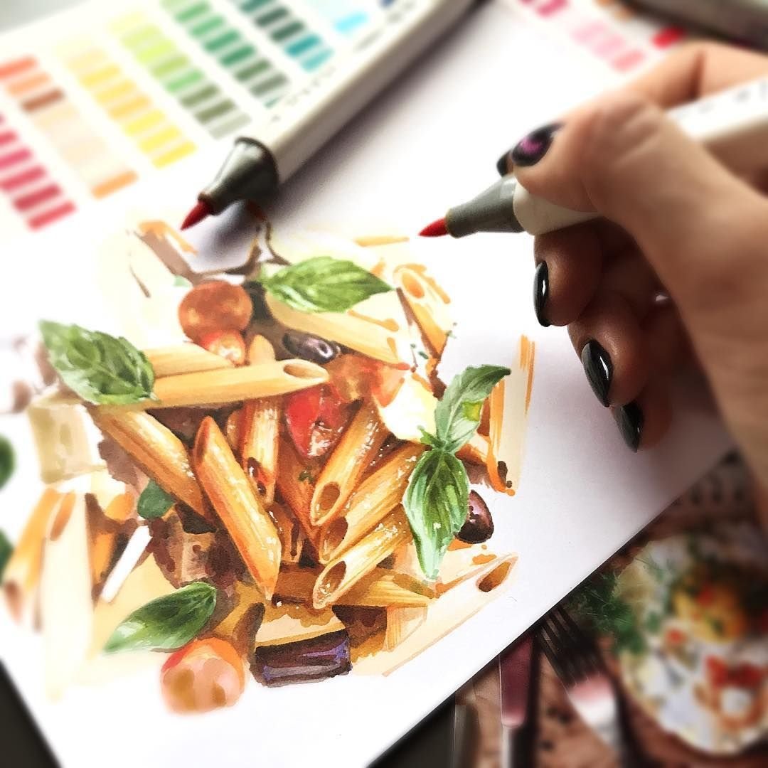 ![Скетчинг маркерами еда]()