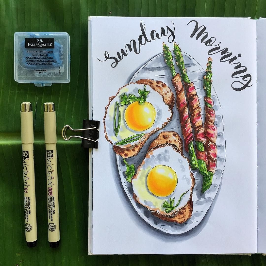 ![Скетчинг яичница маркерами]()