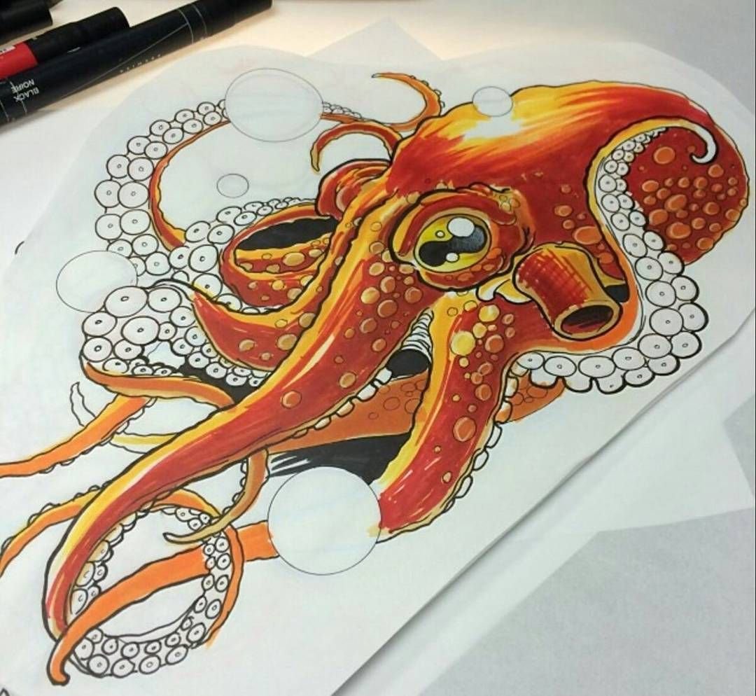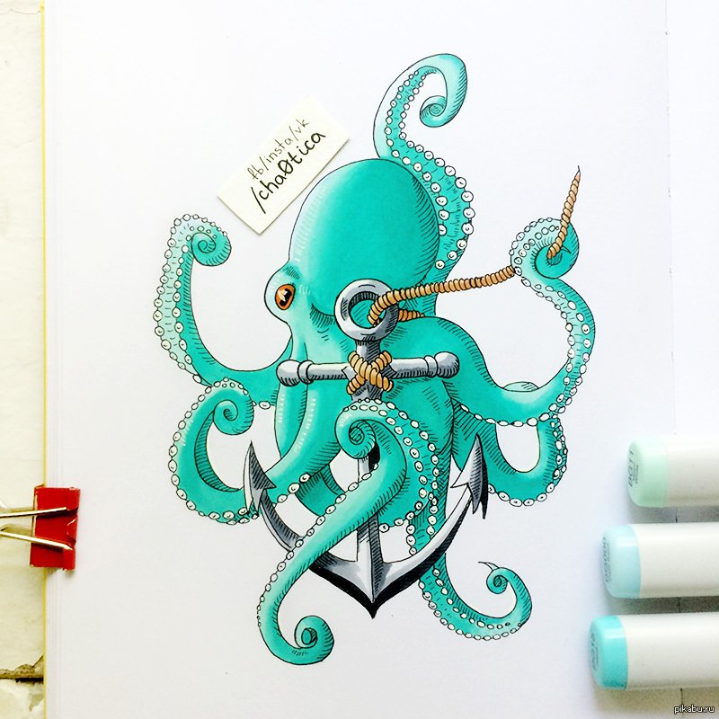 ![Осьминог эскиз цветной]()