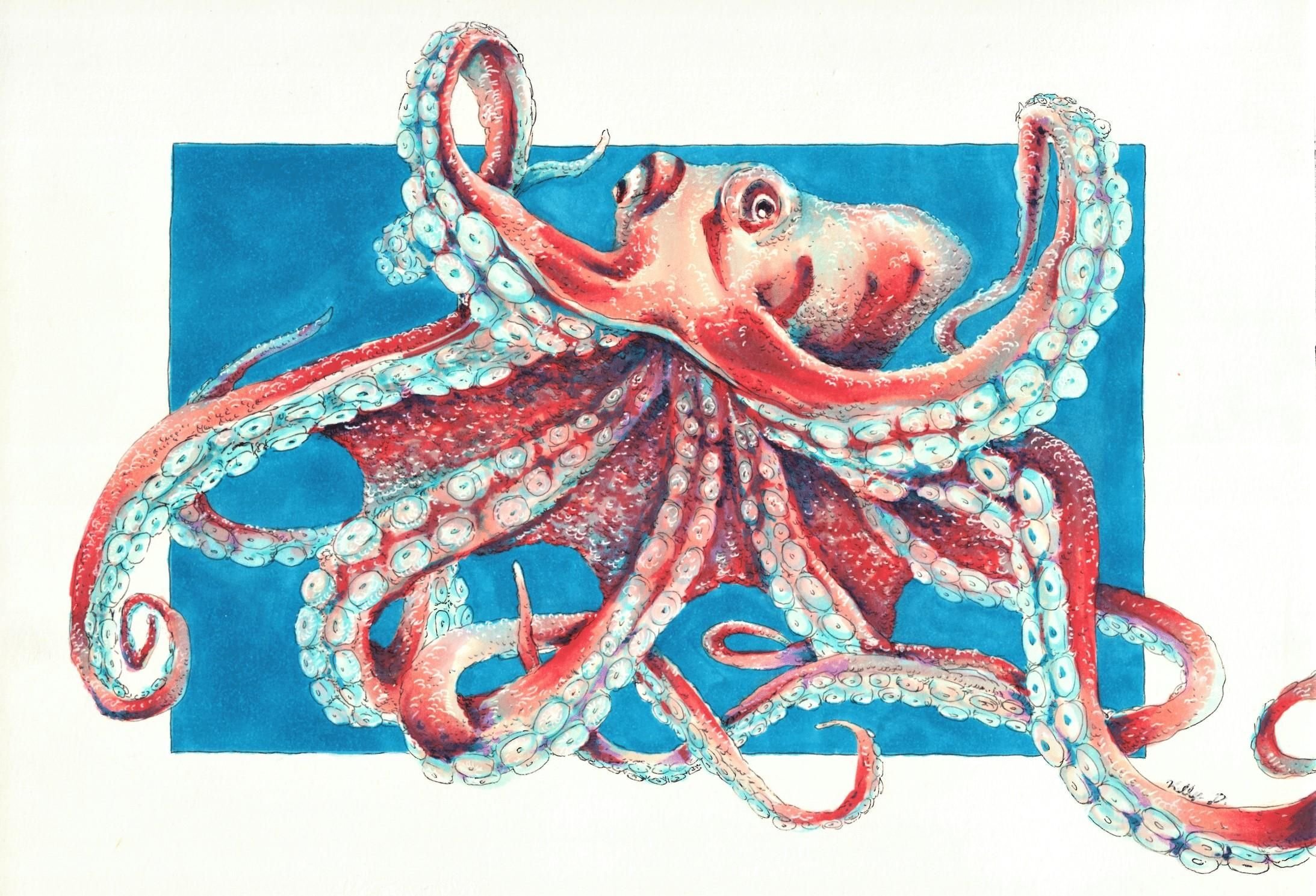 Осьминог гуашью
