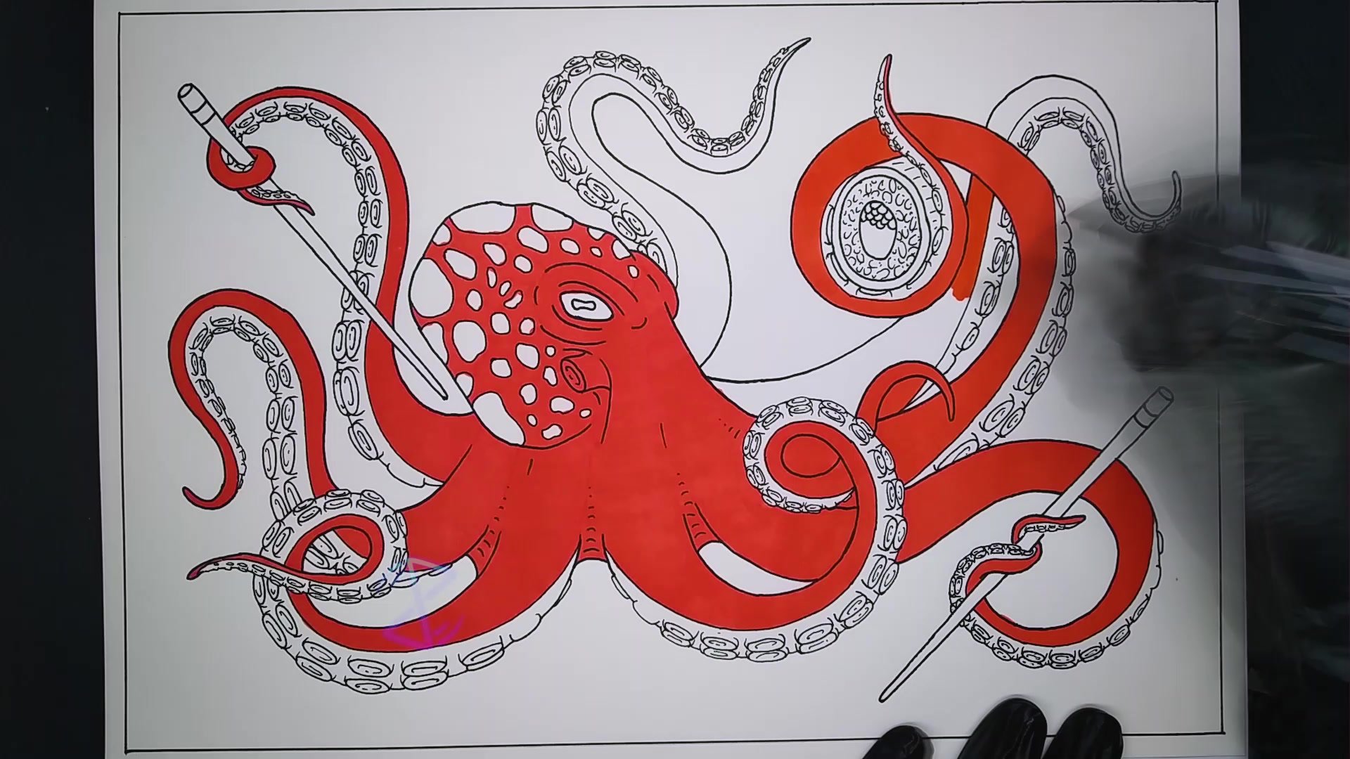 Осьминог фломастерами