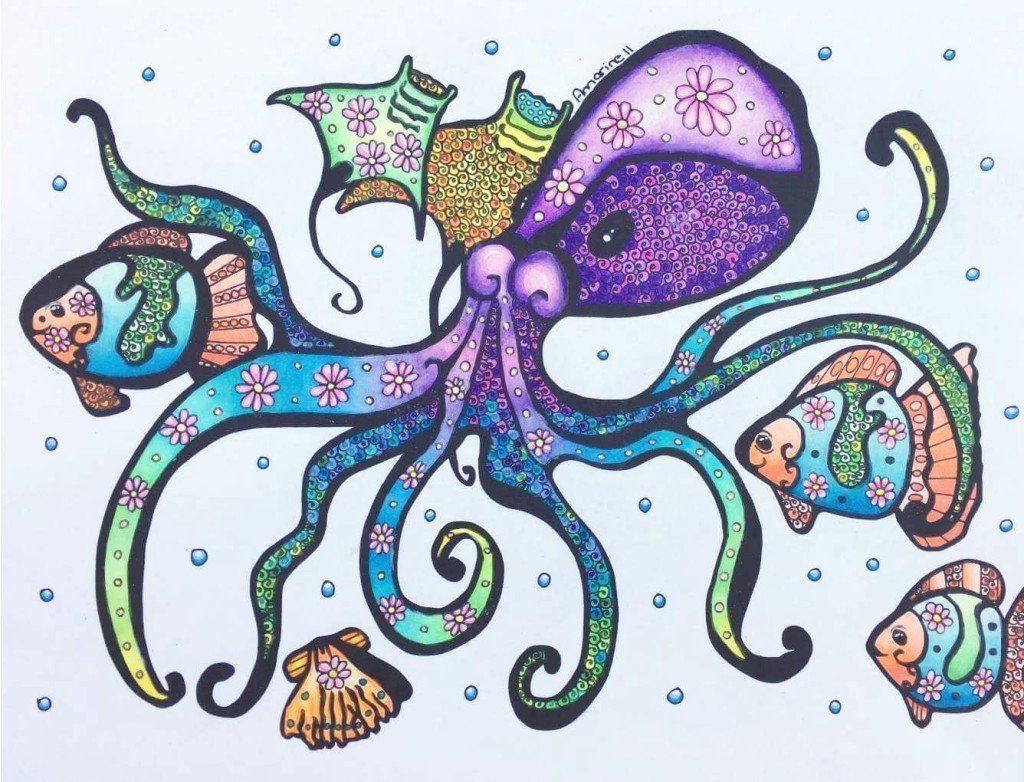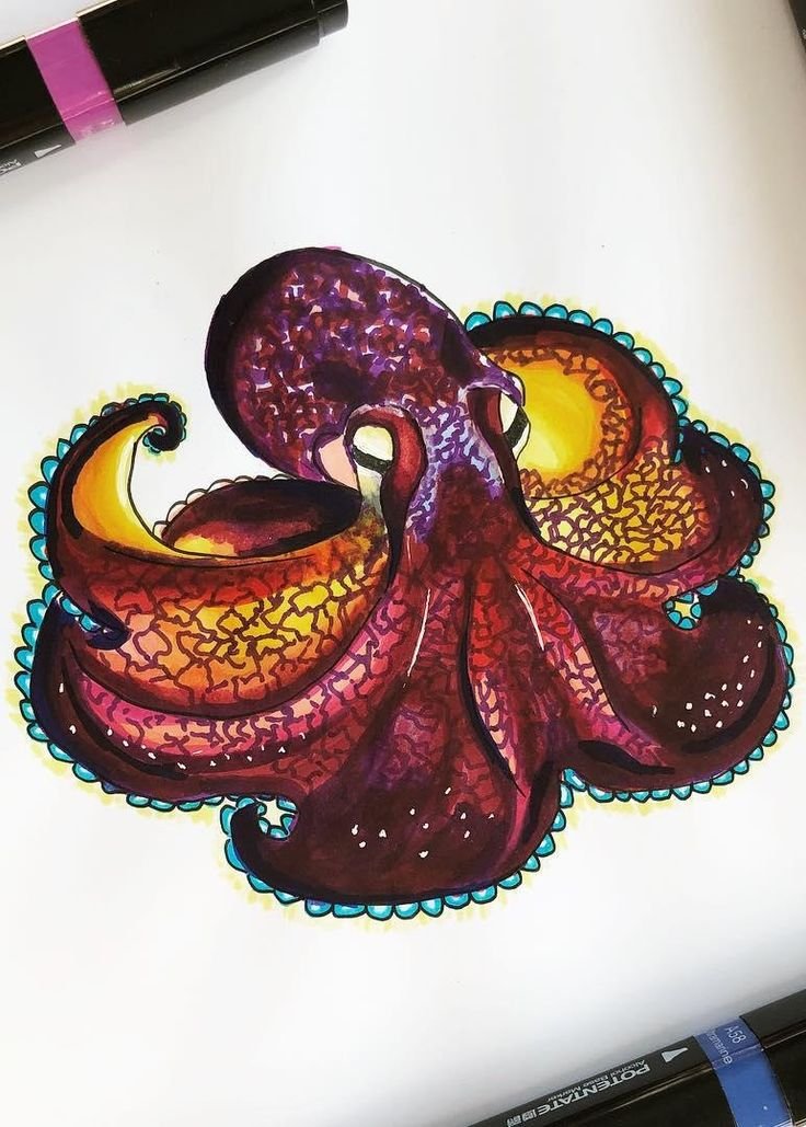 Осьминог рисунок маркерами