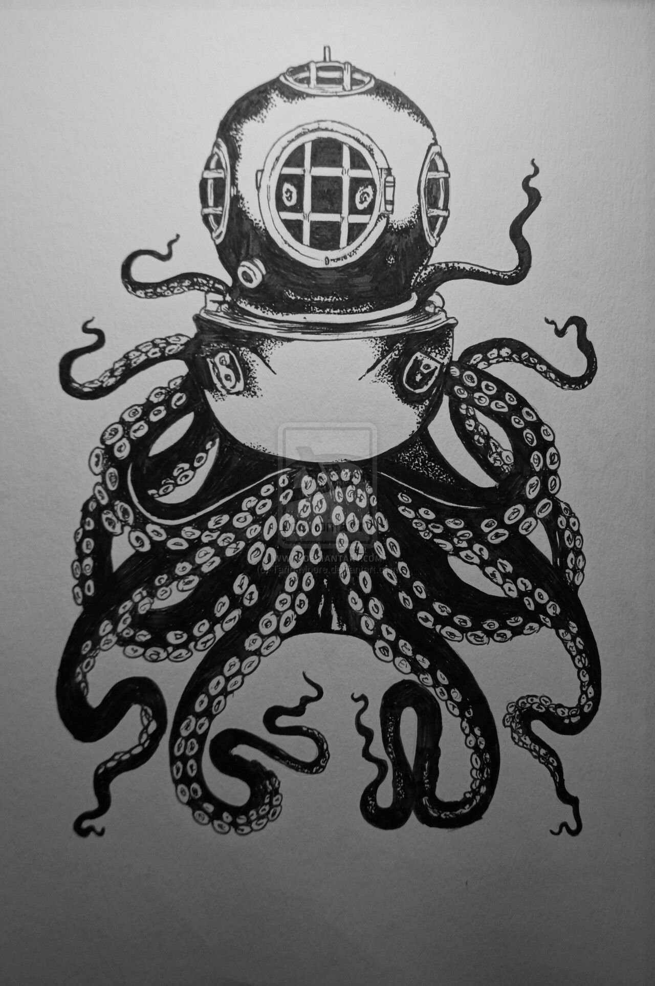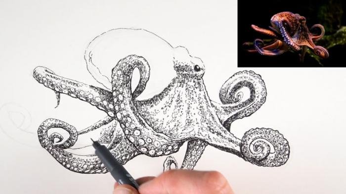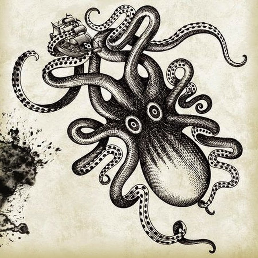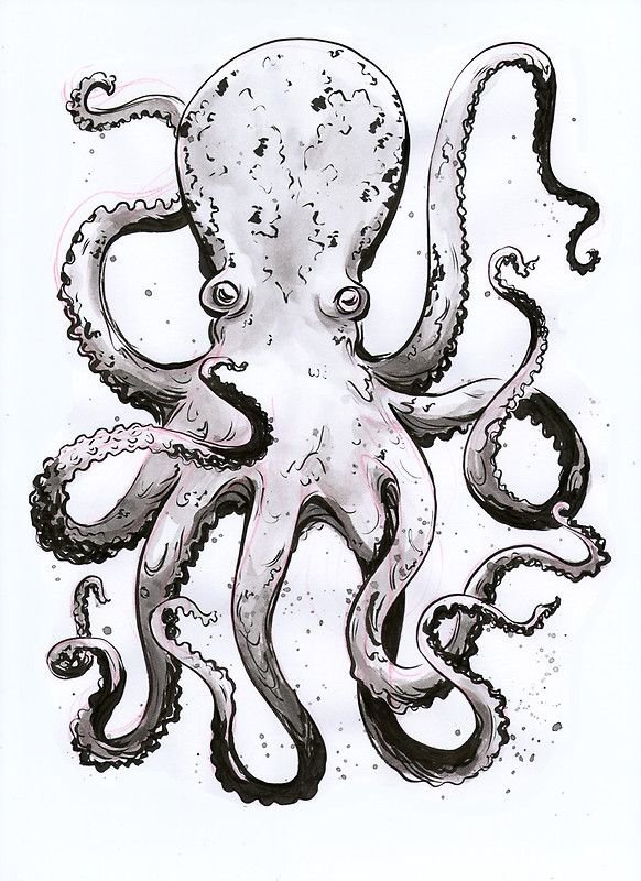 ![Осьминог тушью]()