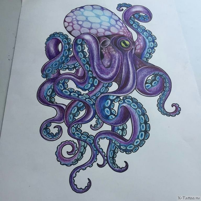 ![Тату осьминог цветной]()