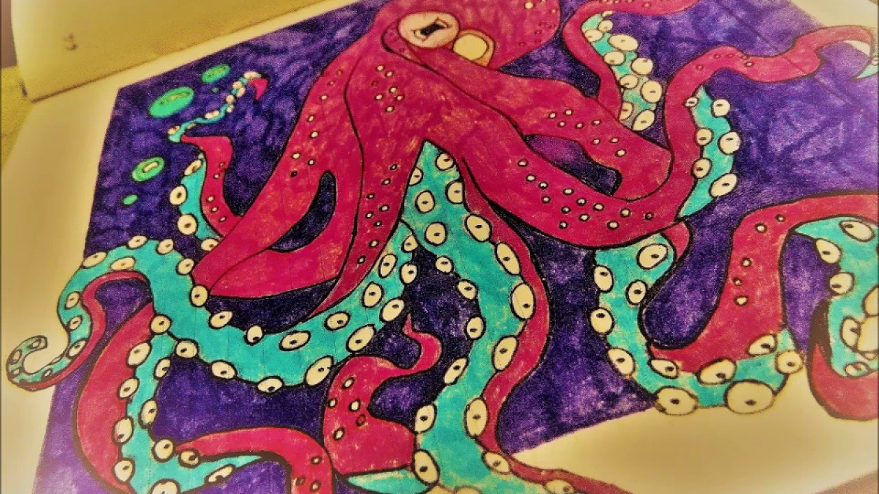 ![Осьминог рисунок маркерами]()