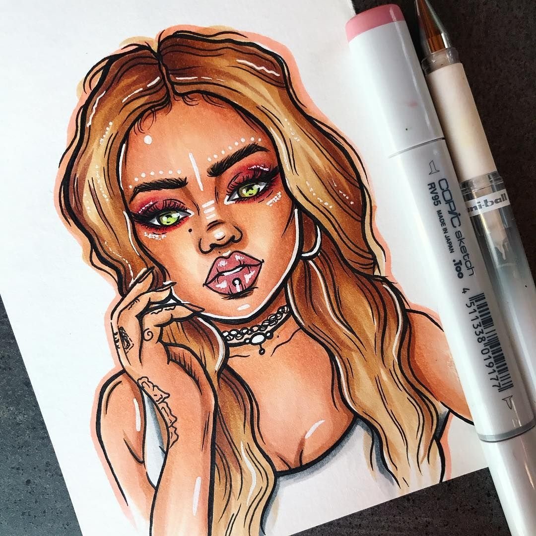 ![Девочка скетч маркерами]()