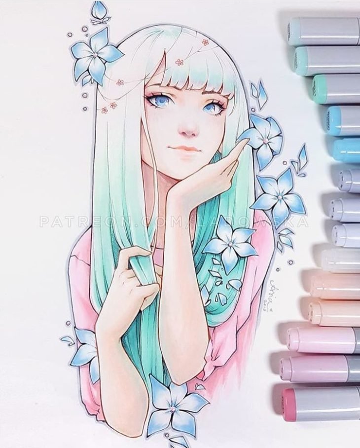 ![Рисование маркерами для скетчинга аниме]()