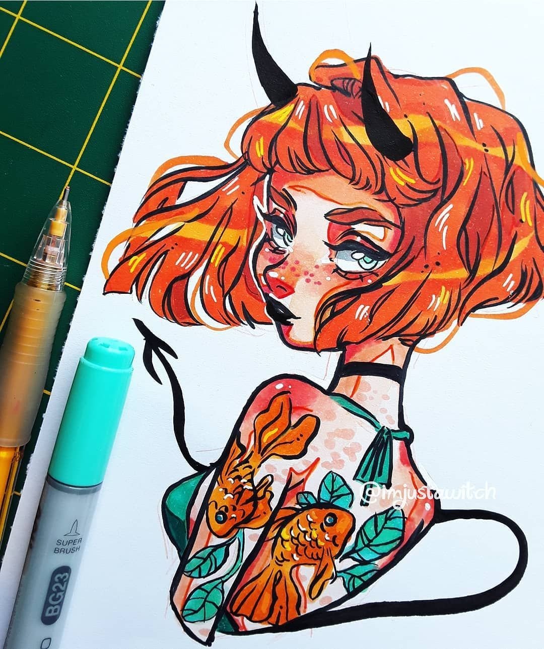 ![Арт маркерами девушка]()