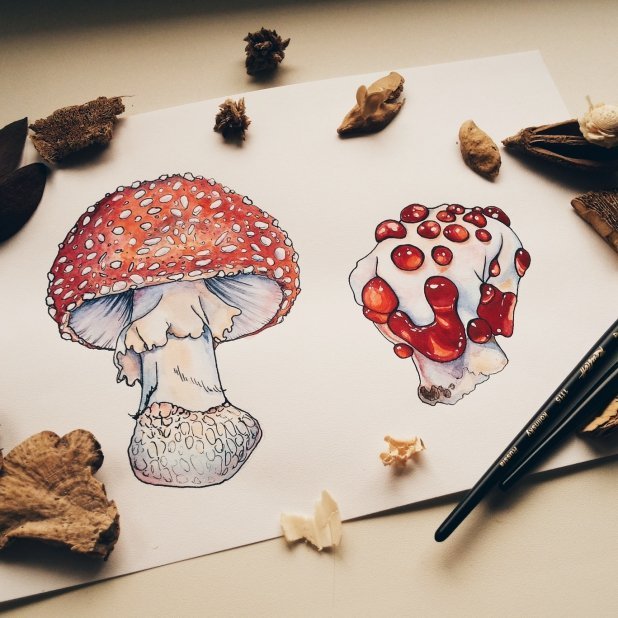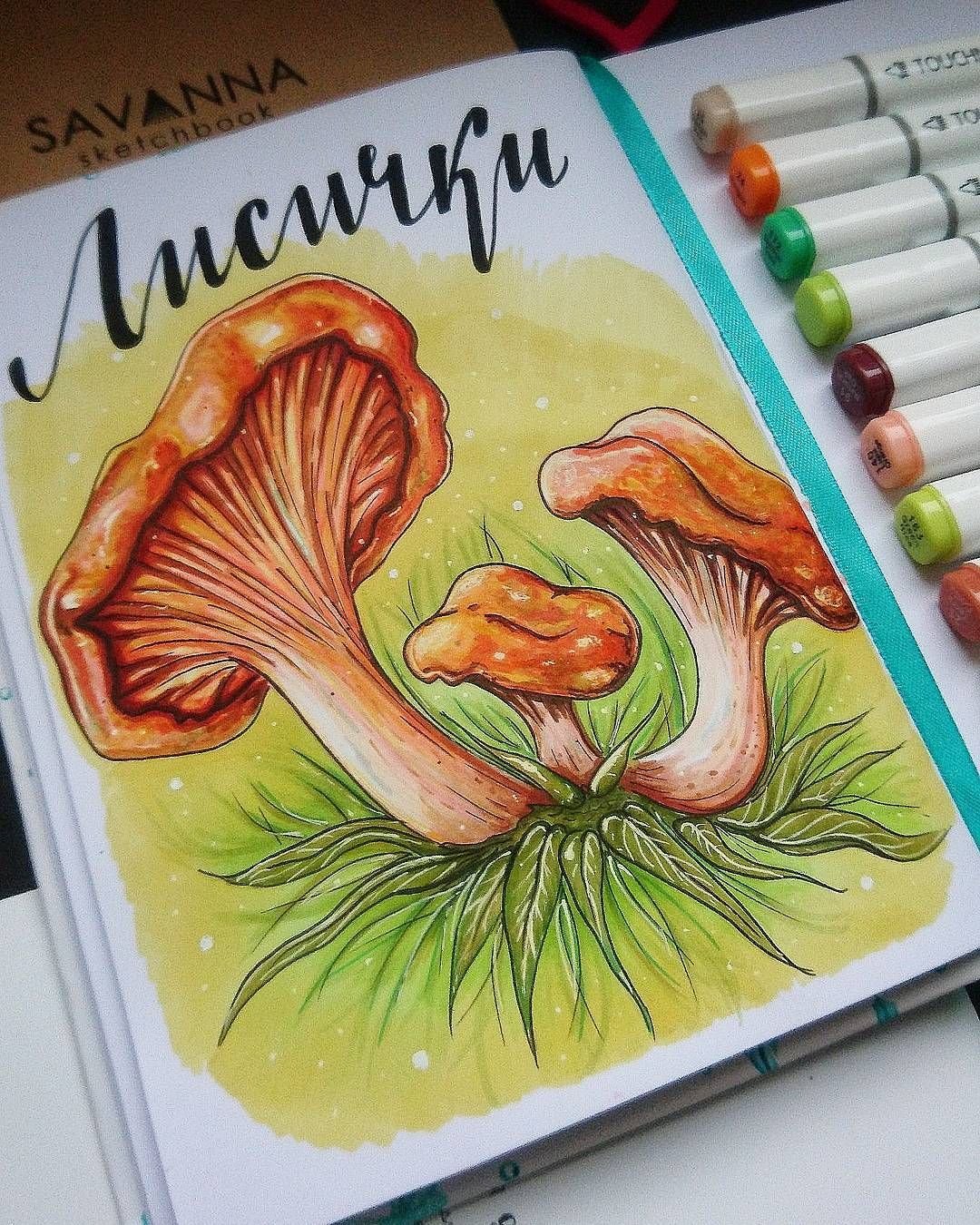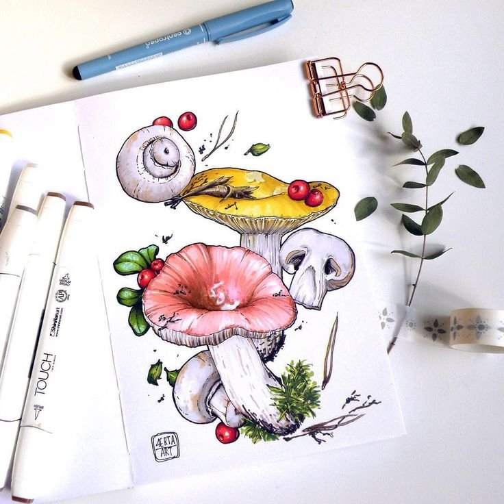 ![Грибы маркерами для скетчинга]()
