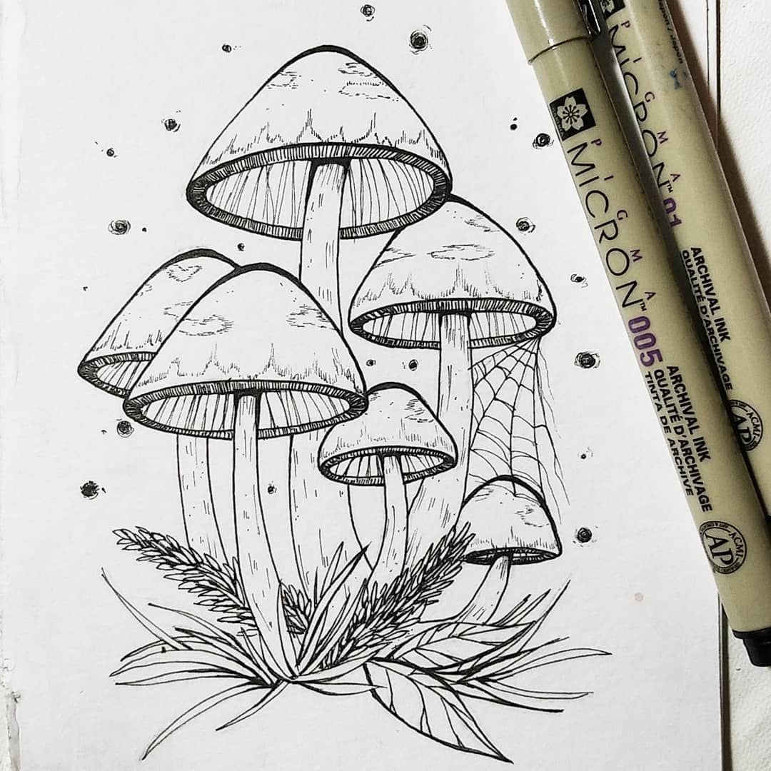 Рисунки в скетчбуке грибы