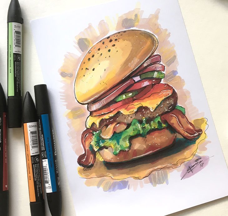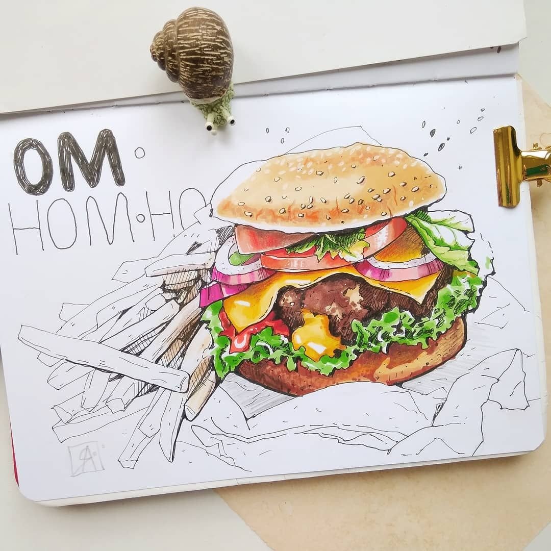 Рисунки маркерами для скетчинга бургер