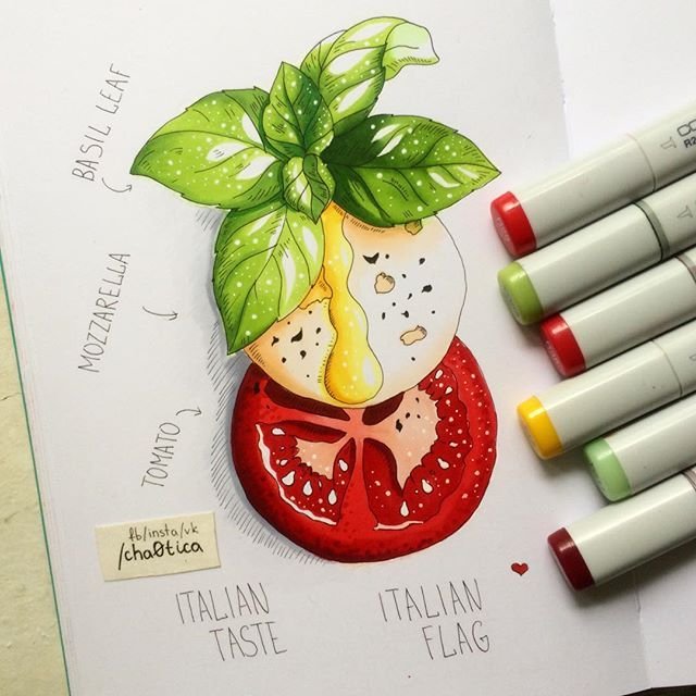 ![Скетчинг маркерами еда]()