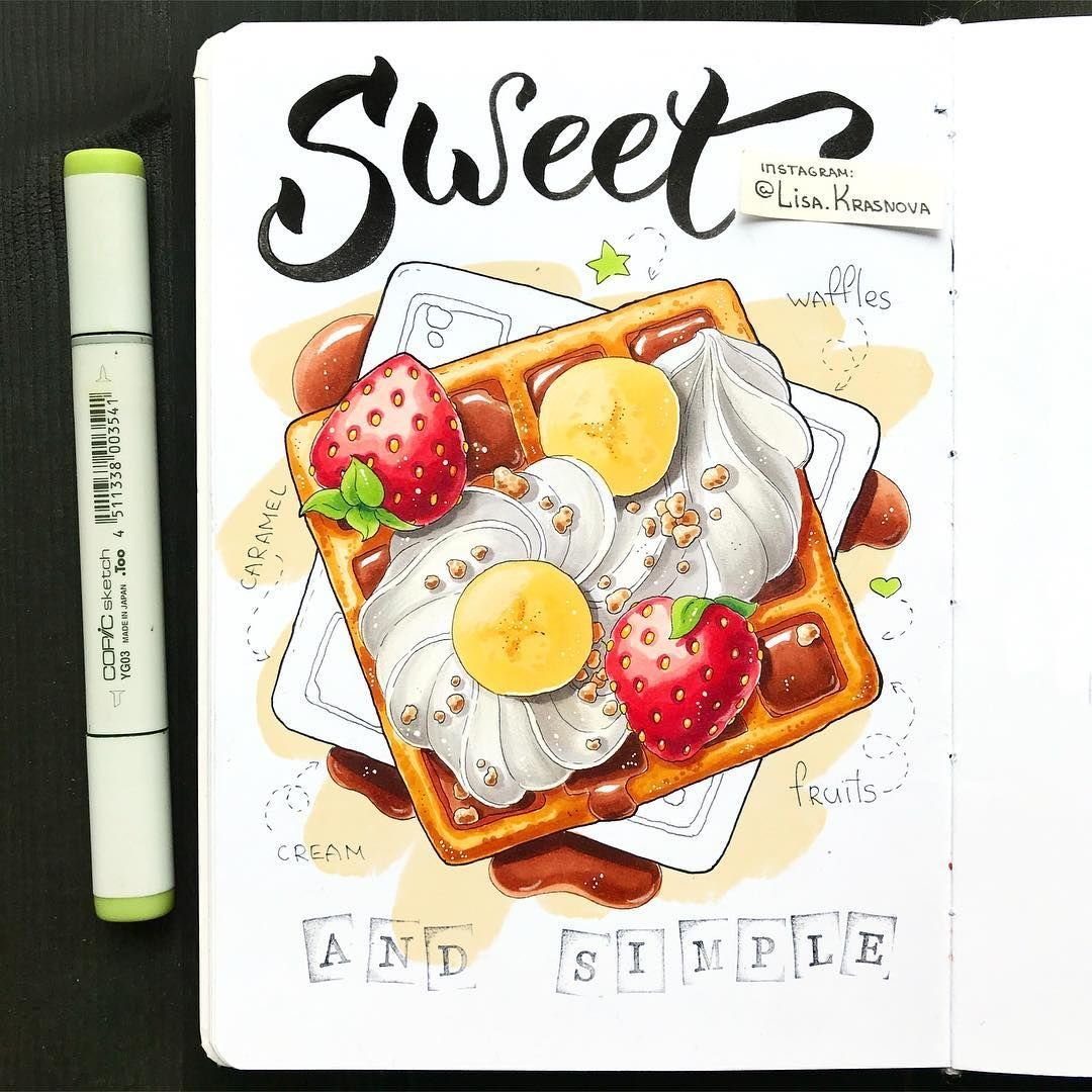 ![Скетчи для скетчбука маркерами еда]()