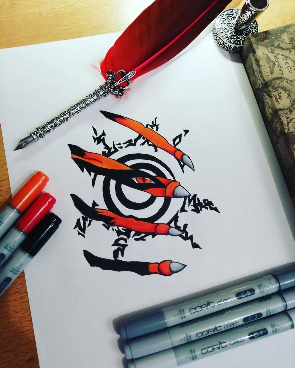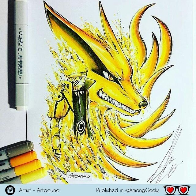 ![Раскраска Наруто девятихвостый Лис маленький]()