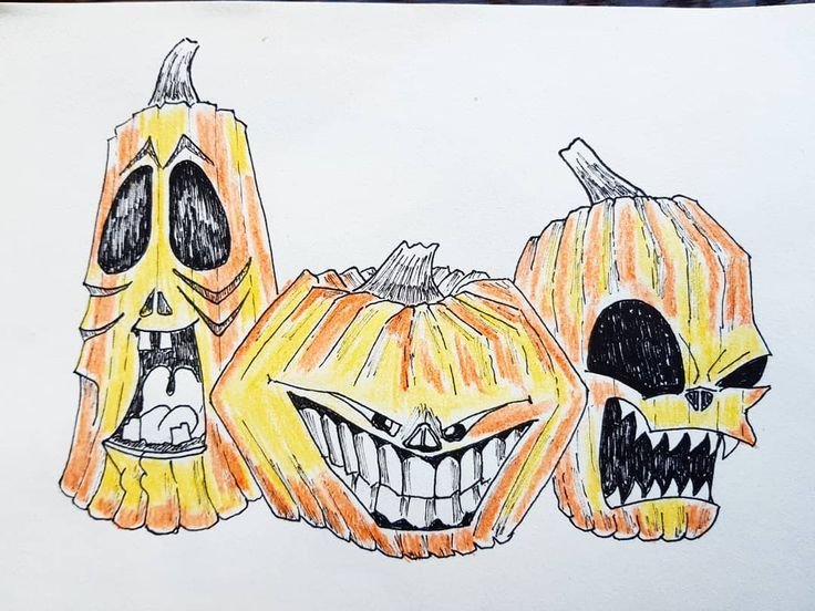 ![Хэллоуинская тыква рисунок маркером для скетчинга]()
