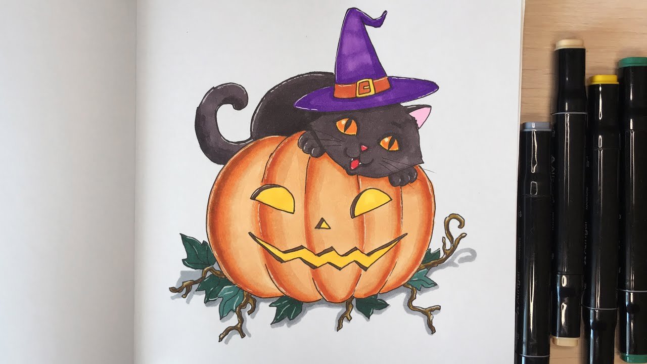Хэллоуинские рисунки маркерами