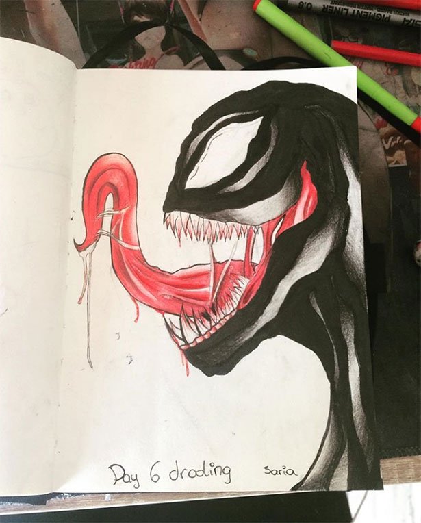 Веном скетч маркерами