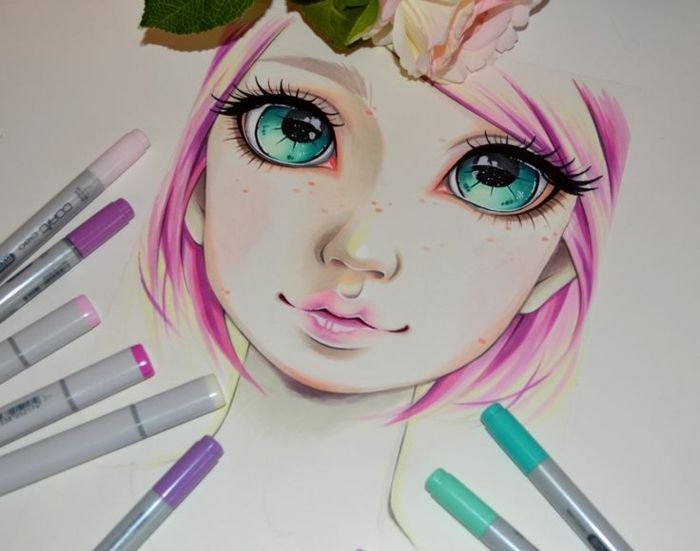 Рисунки девушек маркерами