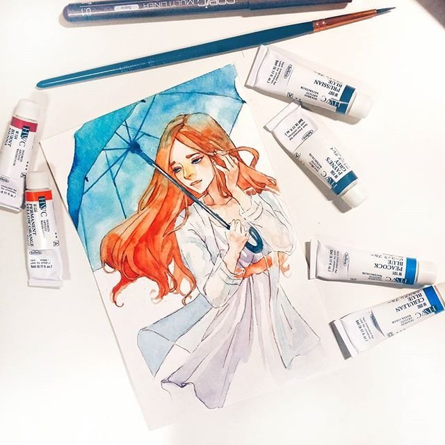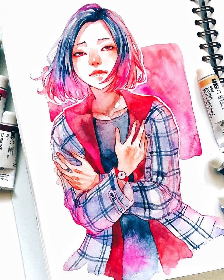 ![Аниме акварельными маркерами]()