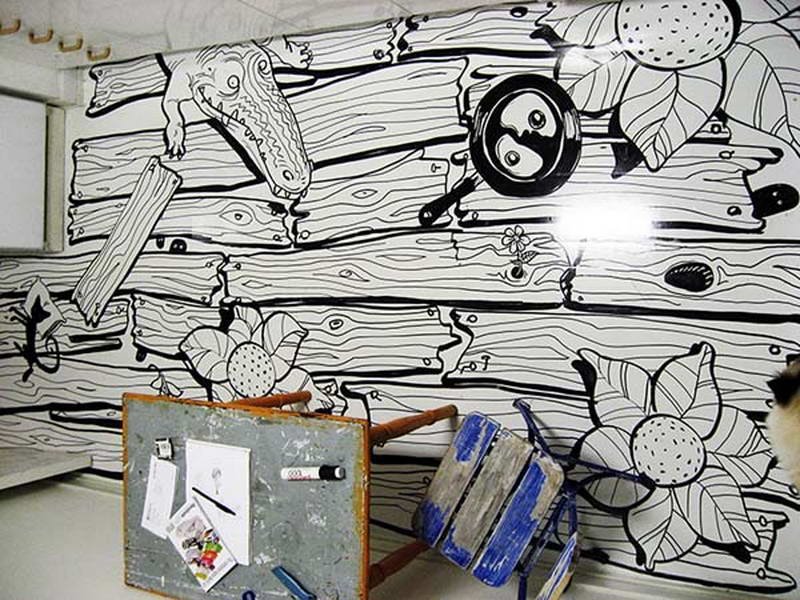 Роспись стен маркером в интерьере