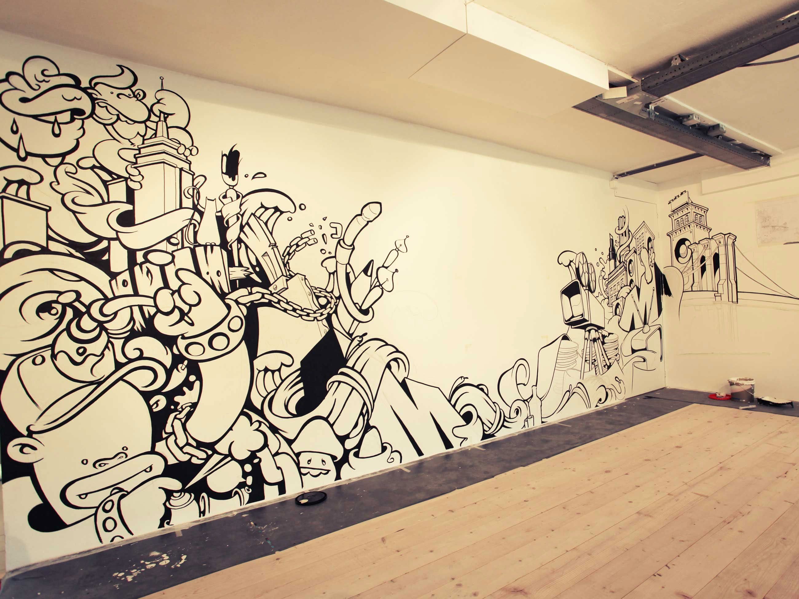 ![Разрисованные стены в офисе]()