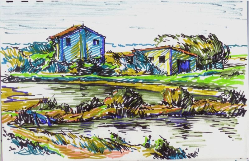 ![Сельский пейзаж маркерами]()